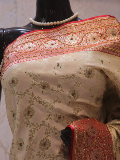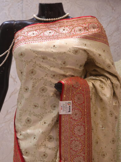 "The Floral White" Premium Bridal Banarasi Silk Saree