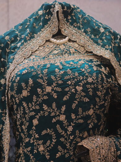 "The Persian Green" Premium Designer Saree with Veil