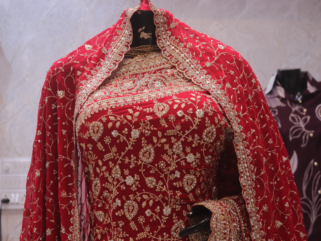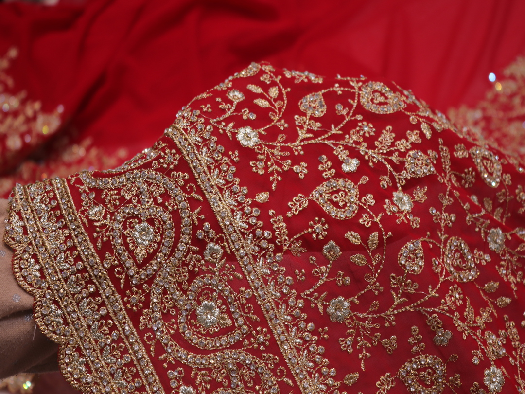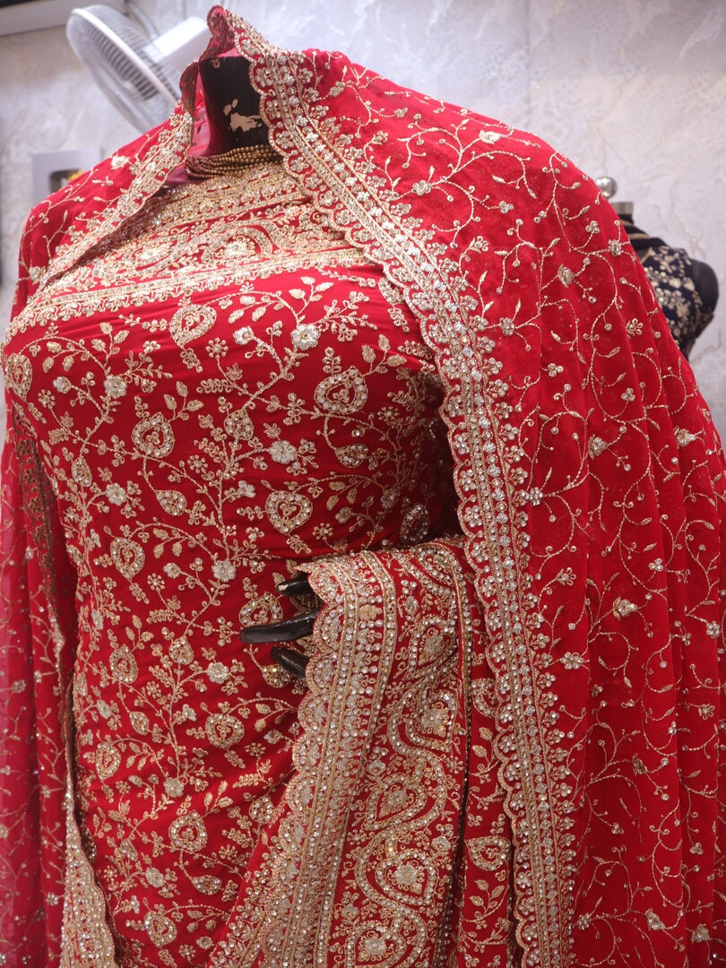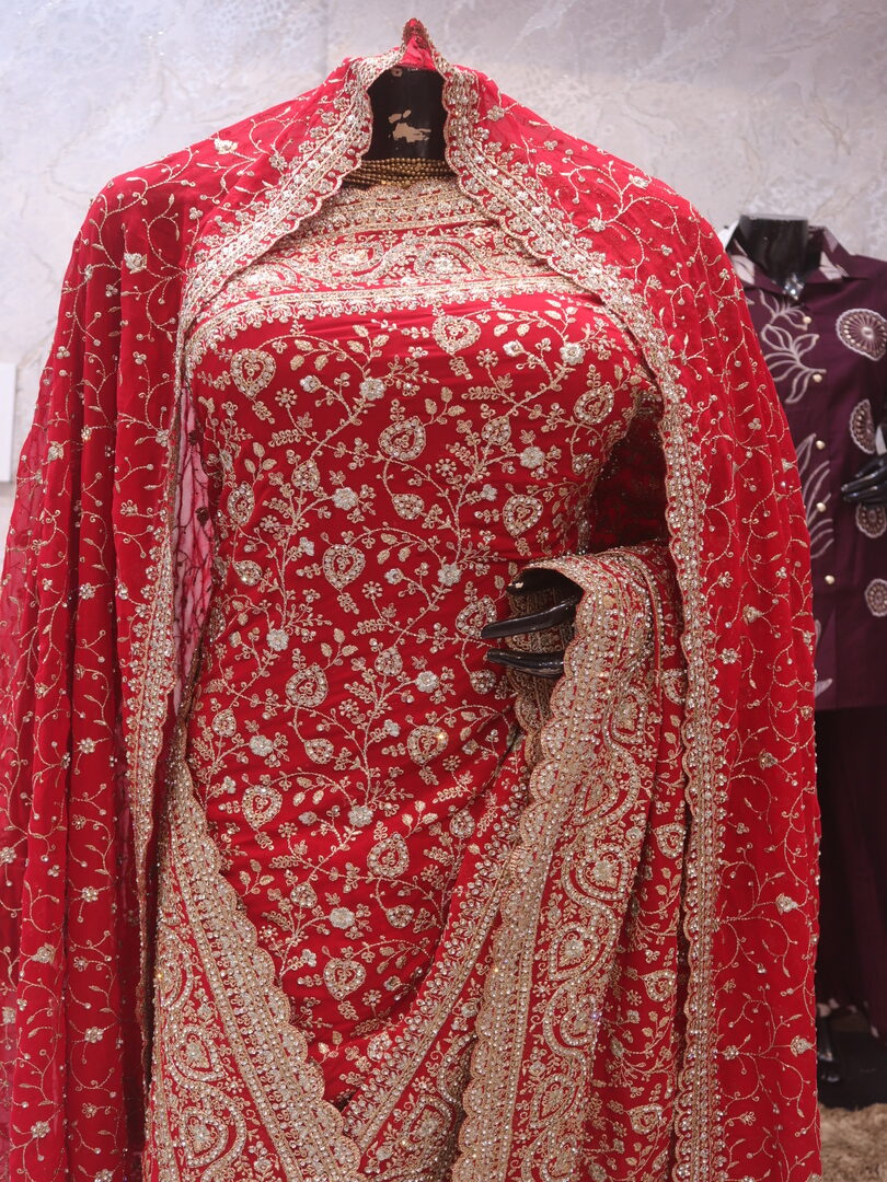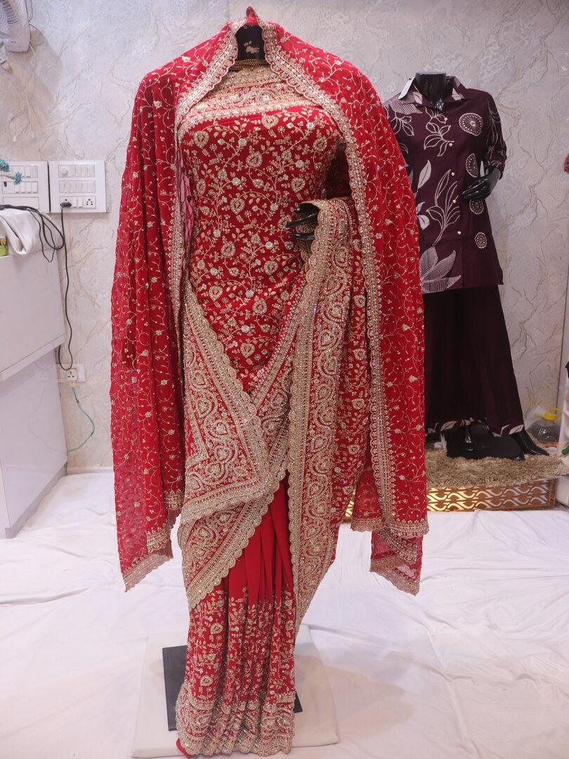 Be the first to review ““The Bridal Red” Premium Designer Saree with Veil”