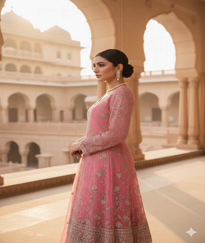 The Designer Double Shade Front Open Style Ready to Wear Dress