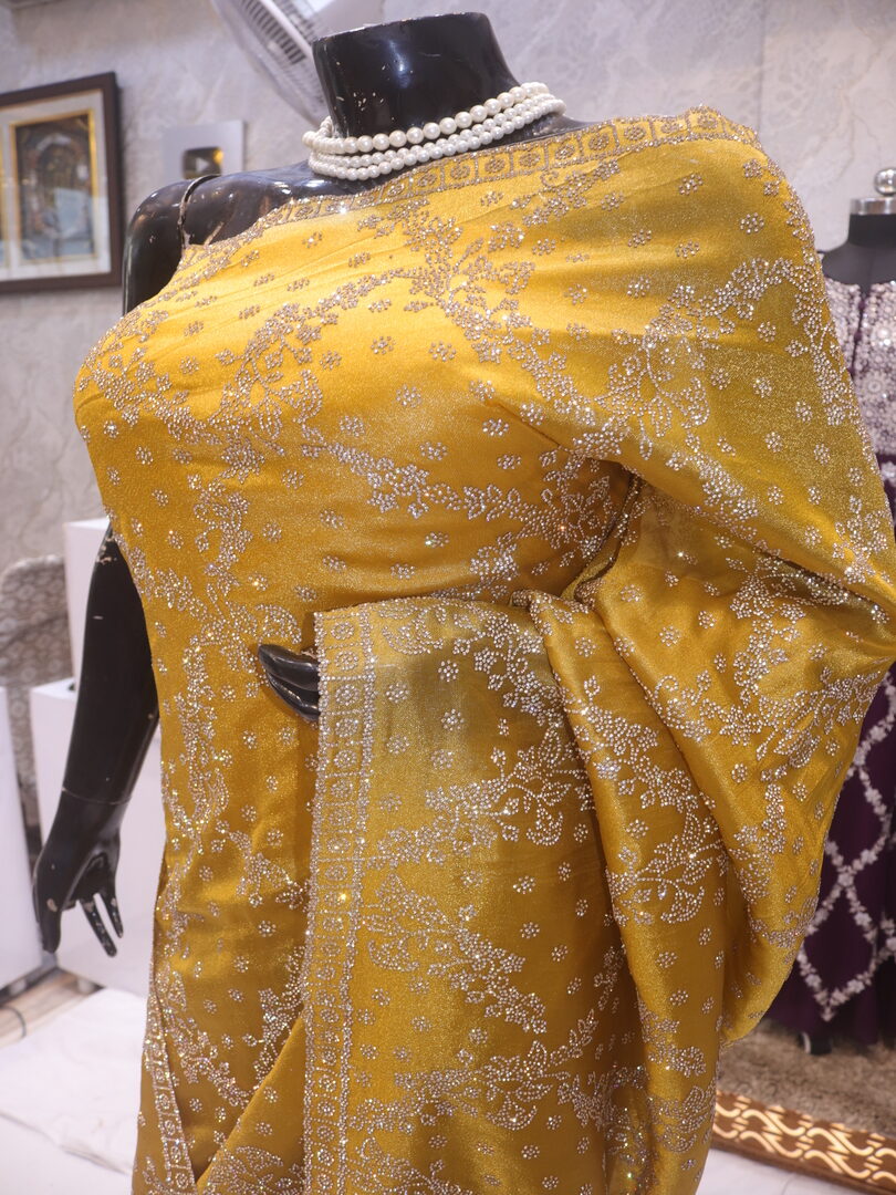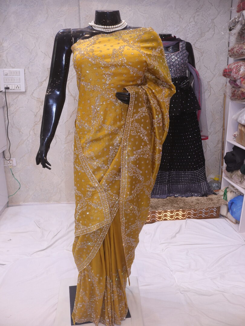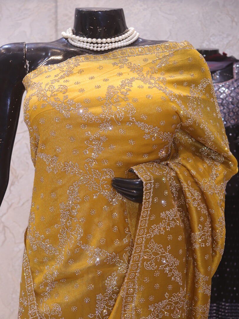 Be the first to review ““The Gold Mustard” Premium Designer Saree”