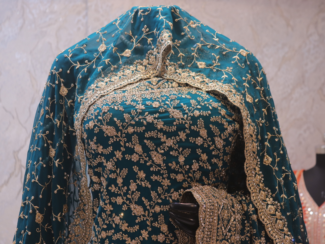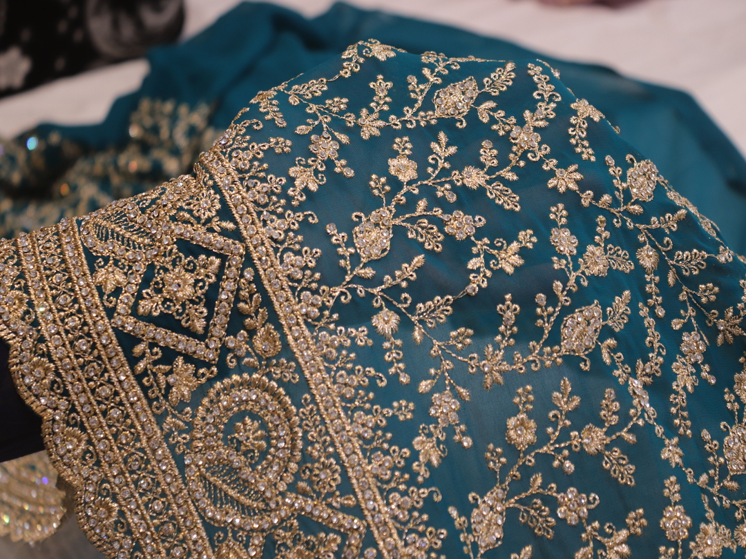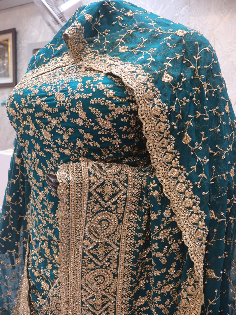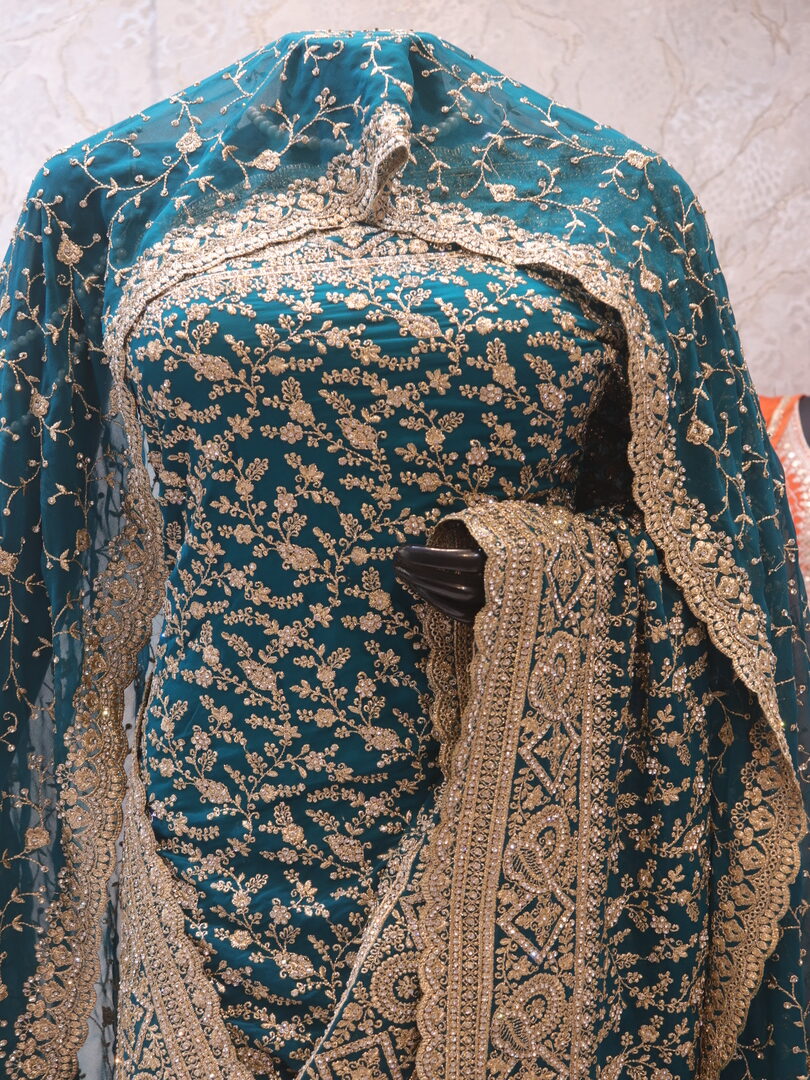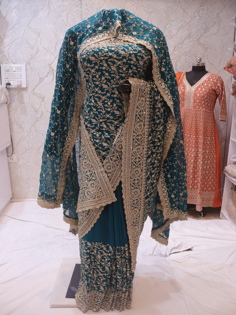 Be the first to review ““The Peacock Blue” Premium Designer Saree with Veil”