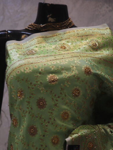 Be the first to review ““The Persian Green” Premium Designer Saree with Veil”