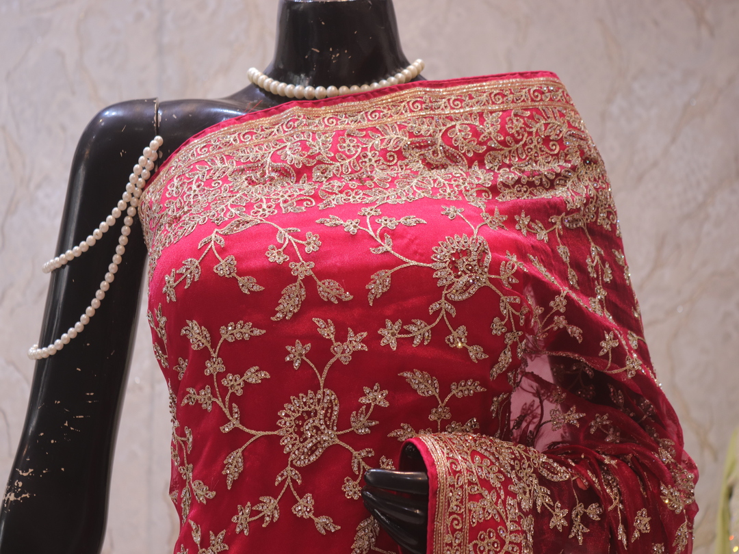 Be the first to review ““The Pink Splash” Premium Designer Saree”