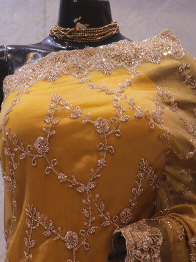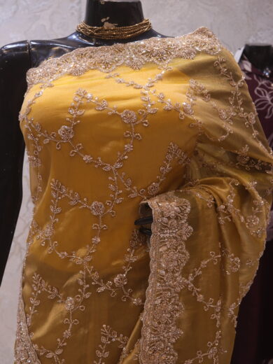 Saree Details: Saree Length: 5.5 Meters Work Type: Weaving (Jaal) Fabric: Kashmiri Modal Silk Color: Pure Black Embellished with: Zari, Pashmina Minakari Border Color: Pure Black Border Fabric: Kashmiri Modal Silk Border Work: Zari, Pashmina Minakari Blouse Details: Unstitched Blouse Fabric 0.8 Meters Work Type: Weaving Fabric: Kashmiri Modal Silk Color: Pure Black Embellished with: Zari, Pashmina Minakari