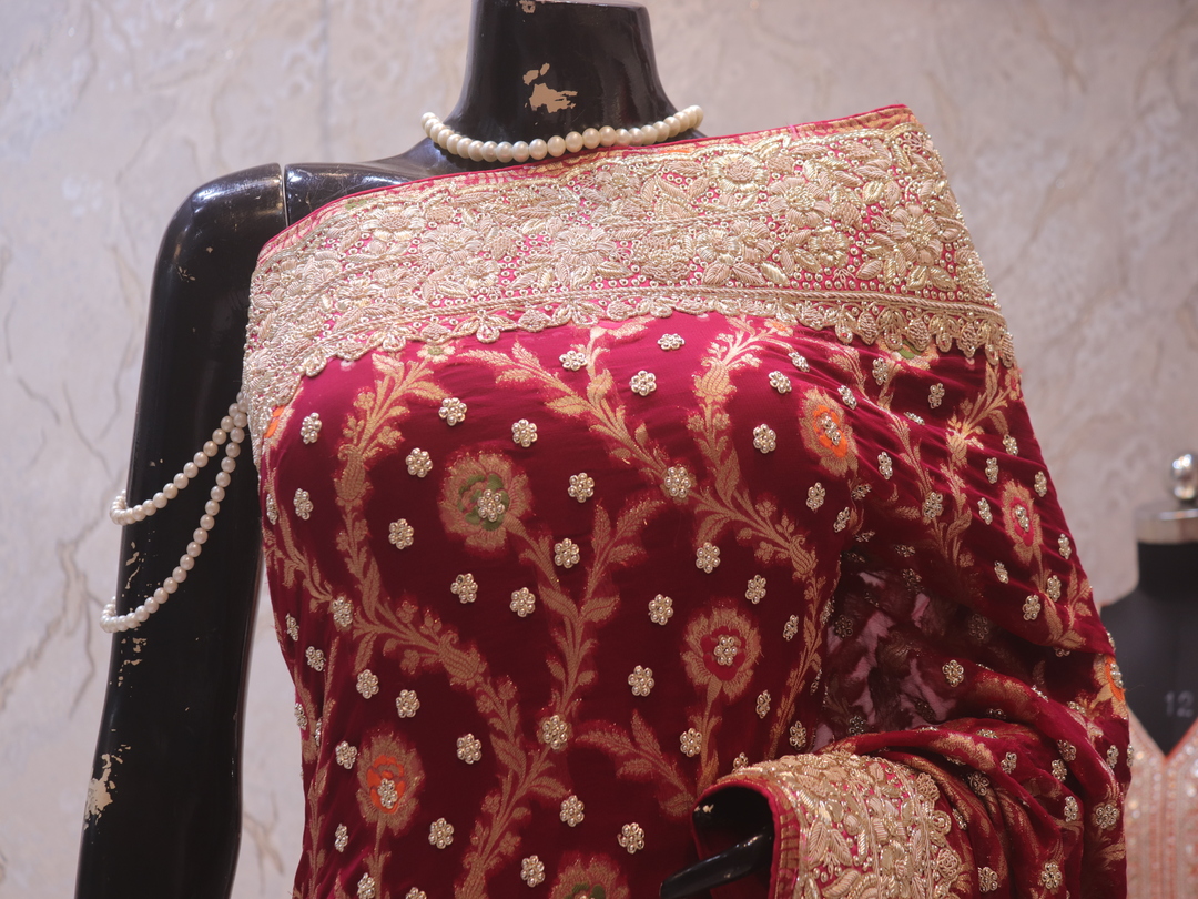 “The Raspberry Sorbet” Premium Banarasi Chiffon Saree