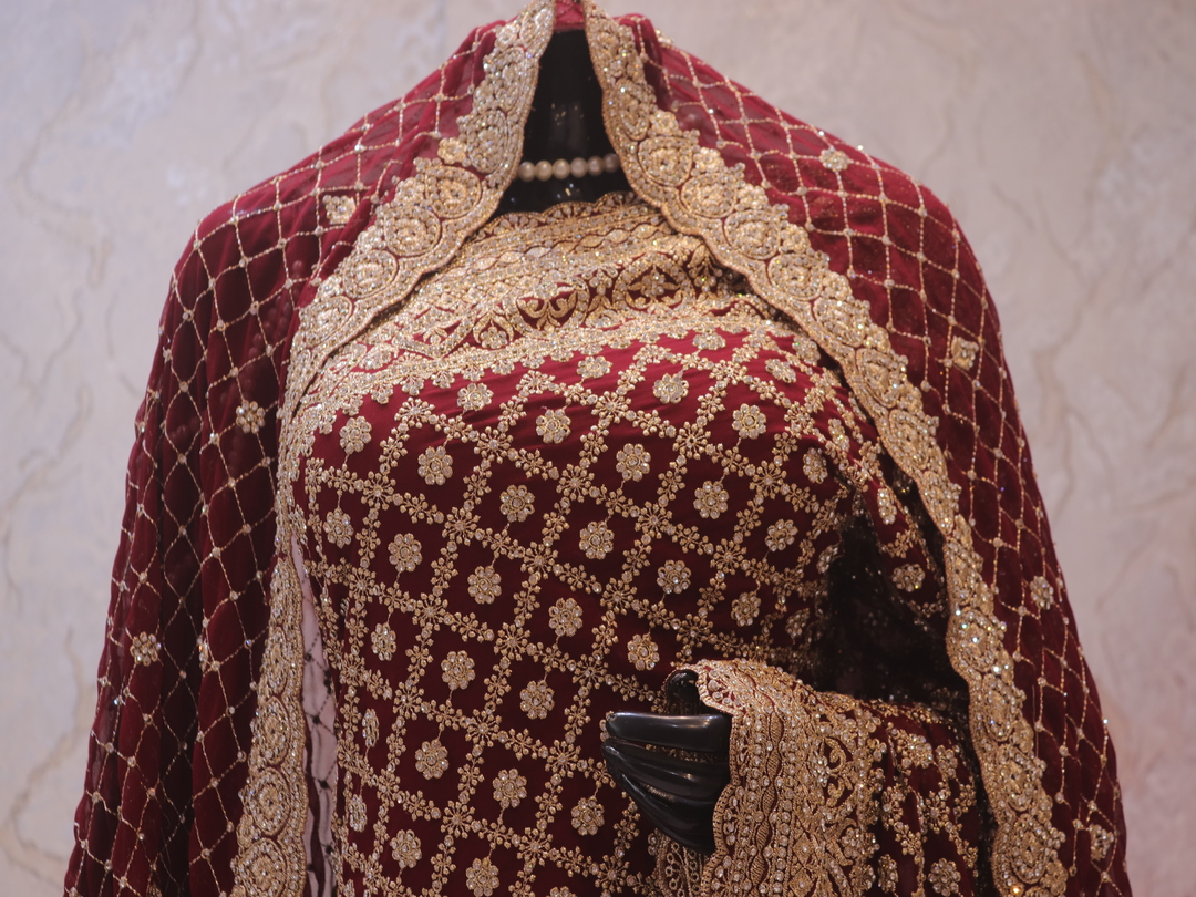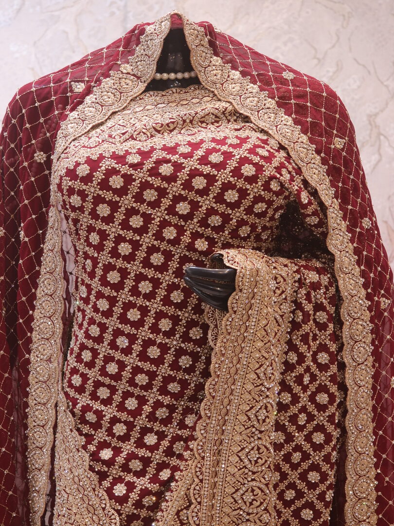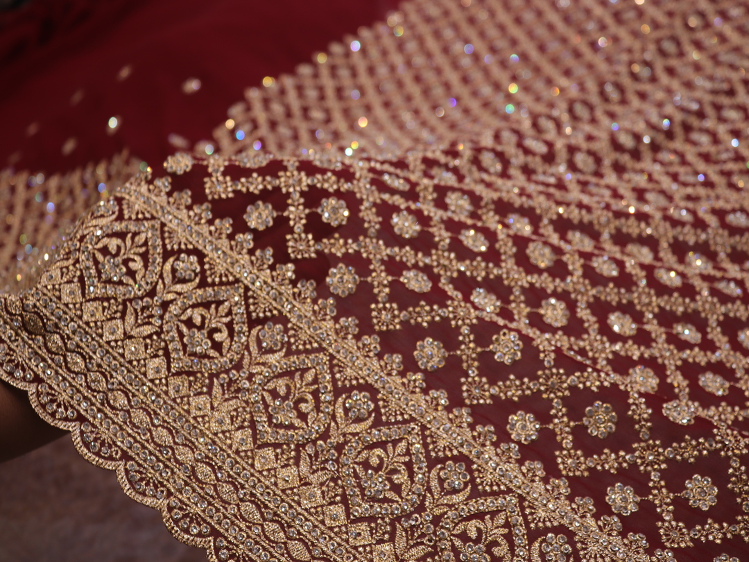 Be the first to review ““The Royal Maroon” Premium Designer Saree with Veil”