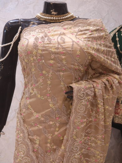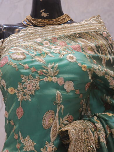 Saree Details: Saree Length: 5.5 Meters Work Type: Full Work (Jaal) Fabric: Georgette Color: Stunning Red Embellished with: Zari, Crystals, Resham Embroidery Border Color: Stunning Red Border Fabric: Georgette Border Work: Zari, Crystals, Resham Embroidery Blouse Details: Unstitched Blouse Fabric 0.8 Meters Fabric: Georgette Color: Stunning Red Embellished with: Zari, Crystals, Resham Embroidery