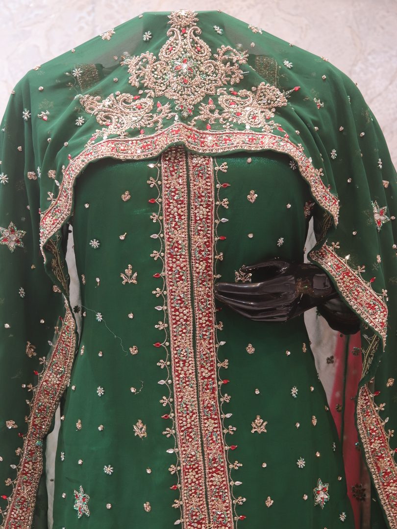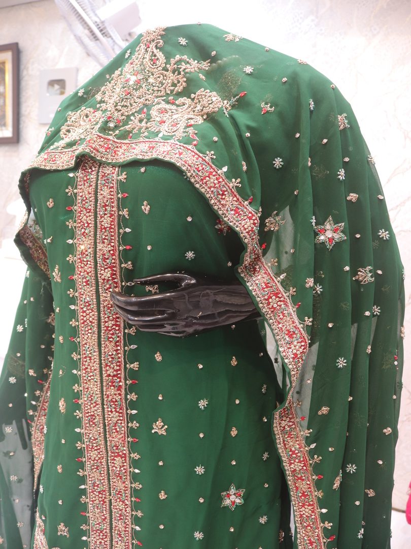 Lehenga Details: Work Type: Full Work Fabric: Georgette Color: True Green Embellished with: Zardozi, Crystals, Sequence Top Details: Fabric: Georgette Color: True Green Embellished with: Zardozi, Crystals, Sequence Dupatta Details: Fabric: Georgette Color: True Green Embellished with: Zardozi, Crystals, Sequence