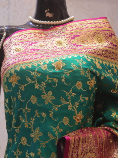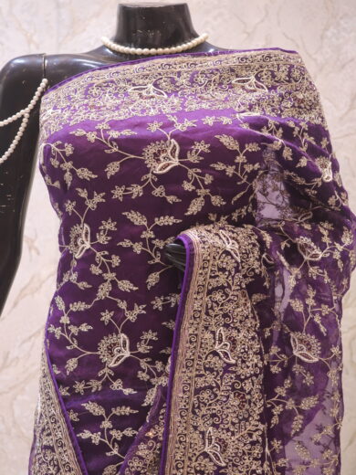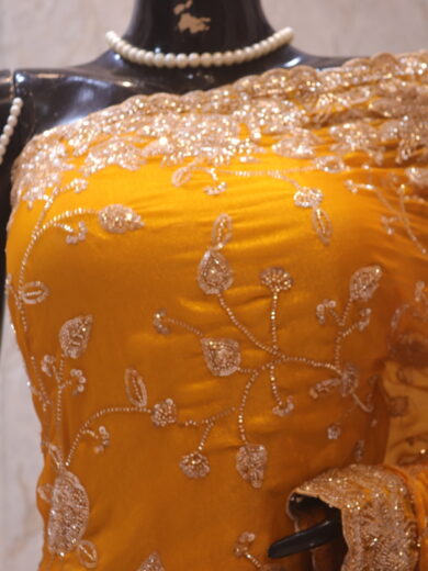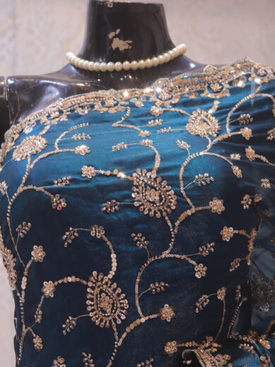 Saree Details: Saree Length: 5.5 Meters Work Type: Full Work (Jaal) Fabric: Rangoli Color: Yale Blue Embellished with: Zardozi, Crystals Border Color: Yale Blue Border Fabric: Rangoli Border Work: Zardozi, Crystals Blouse Details: Unstitched Blouse Fabric 0.8 Meters Fabric: Rangoli Color: Yale Blue Embellished with: Zardozi, Crystals