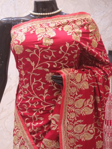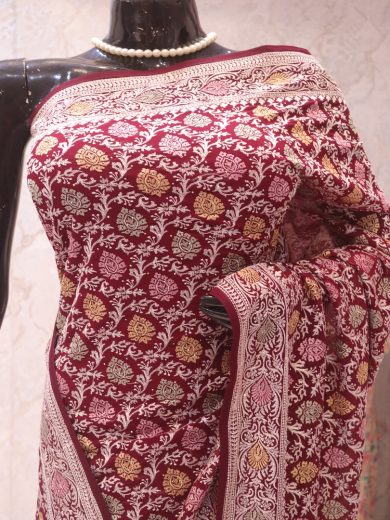 "The Maroon Splash" Premium Bridal Banarasi Silk Saree