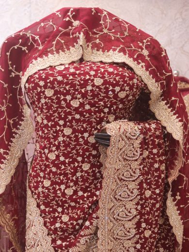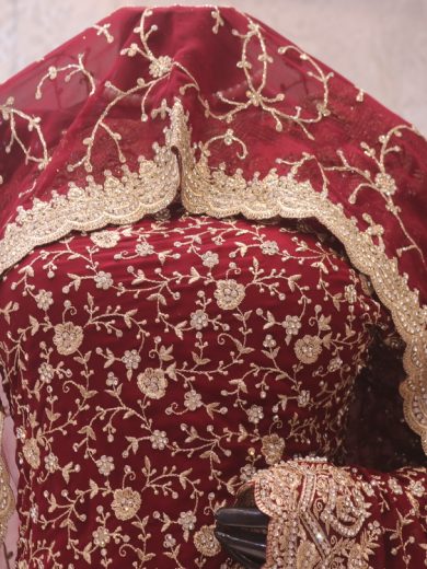 "The Maroon Crystals" Zardozi Handcrafted Lehenga