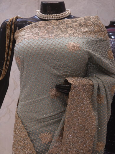 “The Light Steel Blue” Premium Designer Saree