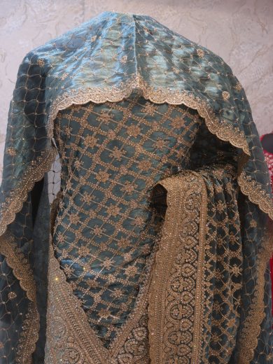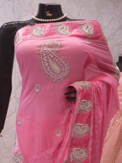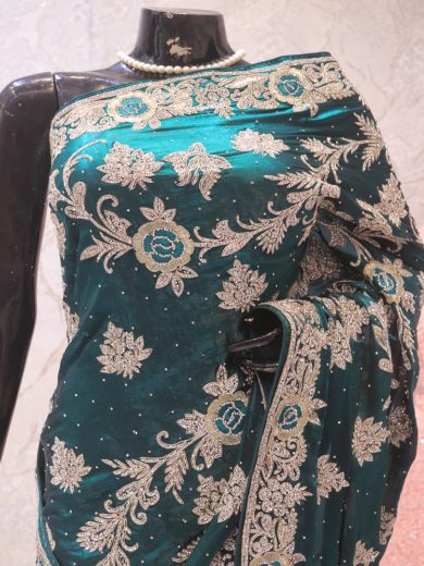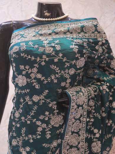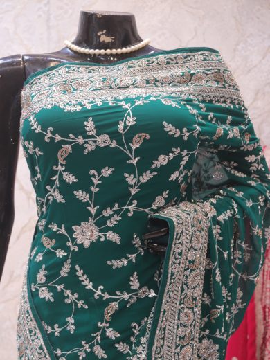 “The Pearl Aqua Duet” Premium Handcrafted Saree